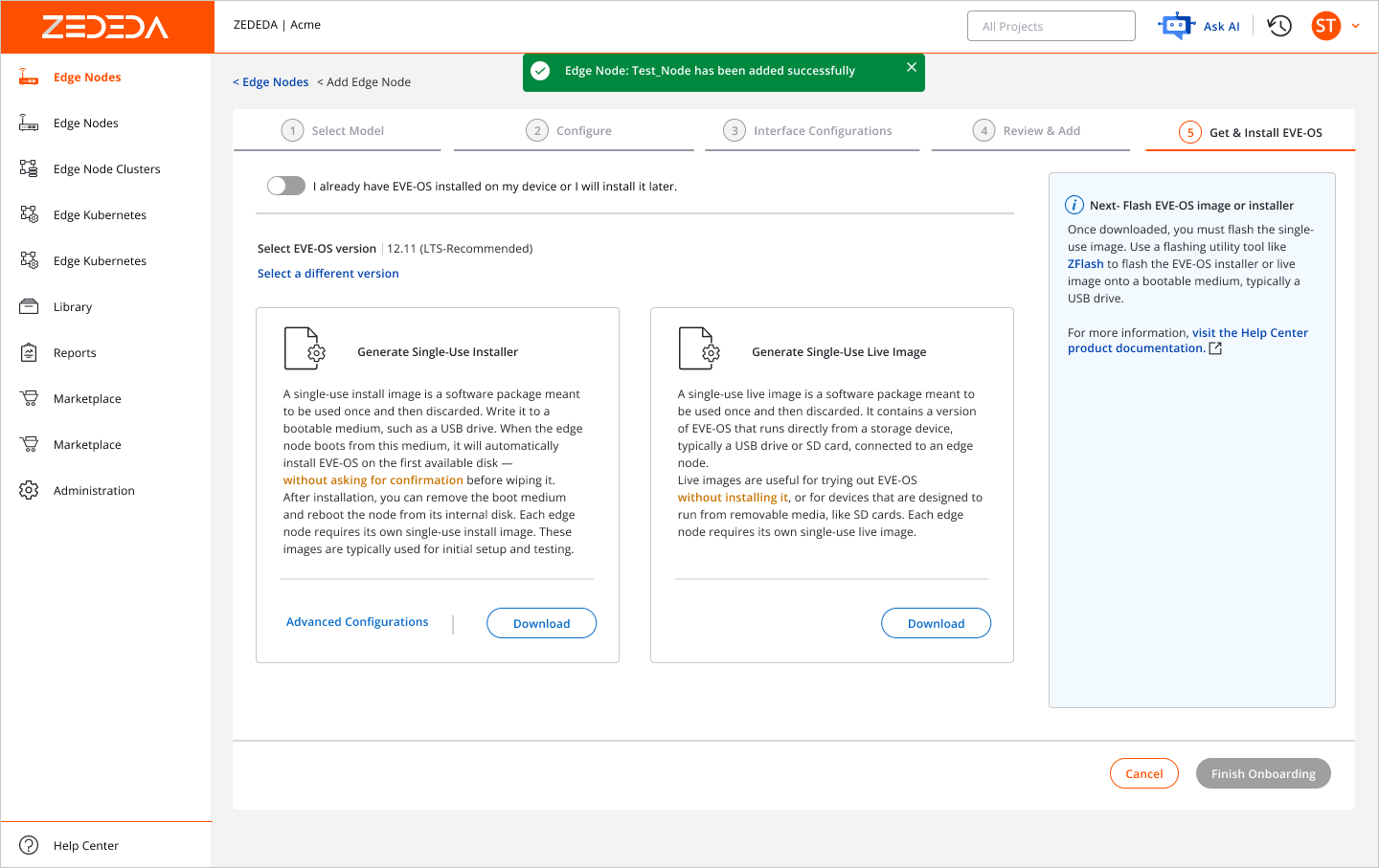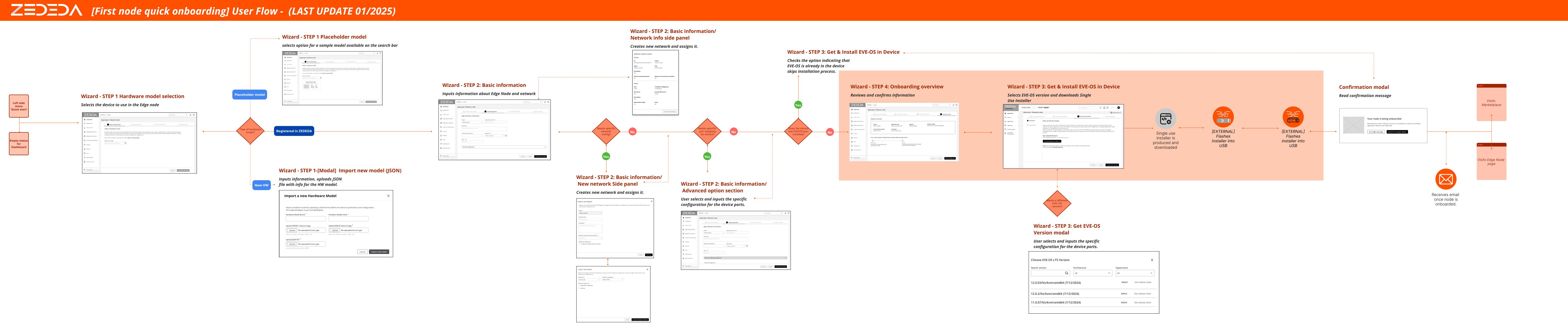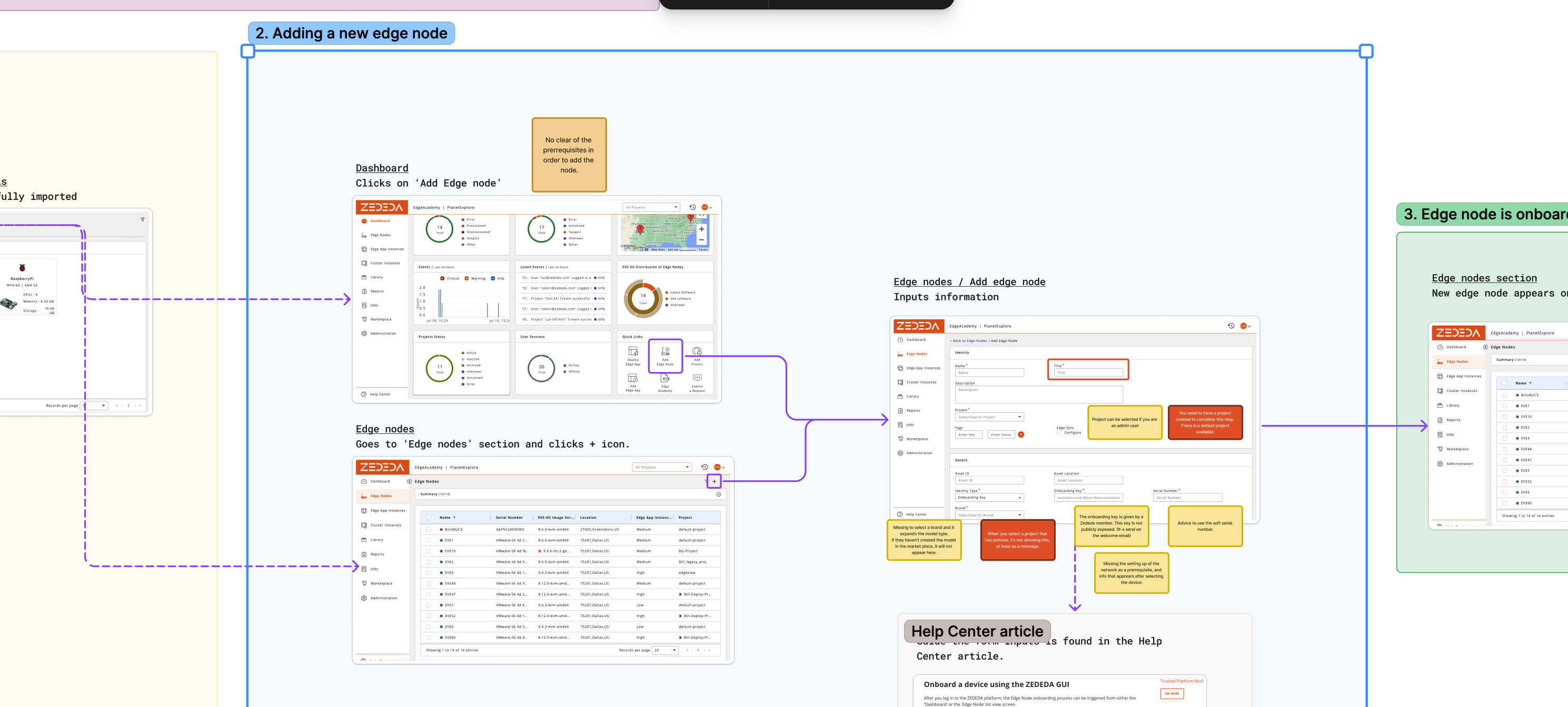 This ‘flow’ is the sum of separate interactions in different sections and platforms to achieve only one task: Onboard a node to the ZEDEDA Control platform. How this user experience has been built has pushed the creation of manual processes and additional support documentation so our users can achieve the tasks.