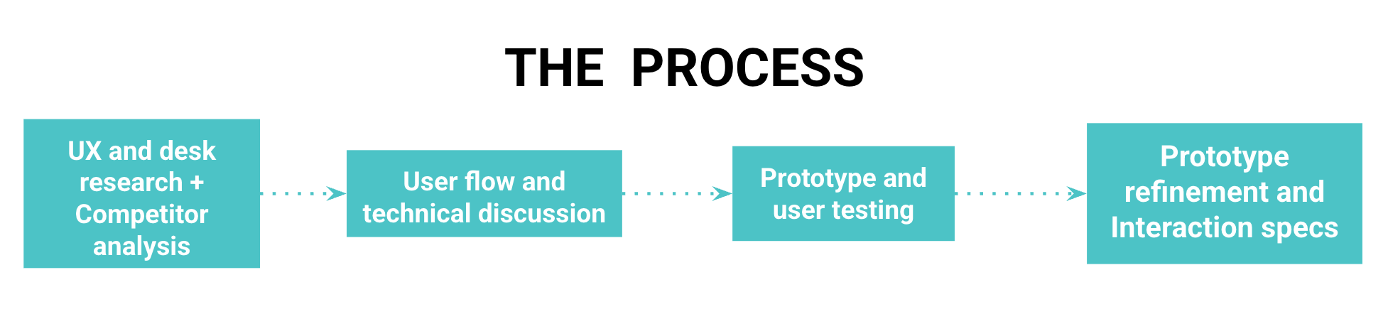 Activities: User research, design strategy, wireframing, prototyping, user testing, and design specs creation.