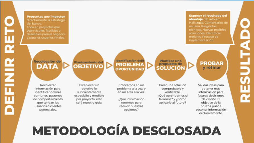 A Design discovery process to propose an innovation hub for envisioning the future of banking in Colombia. This process was conducted within the technology and product areas to assess the current resources that could be leveraged to create a new space for innovation. Different tracks were proposed so that the hub could cover product research, development, and market analysis on the main topics.